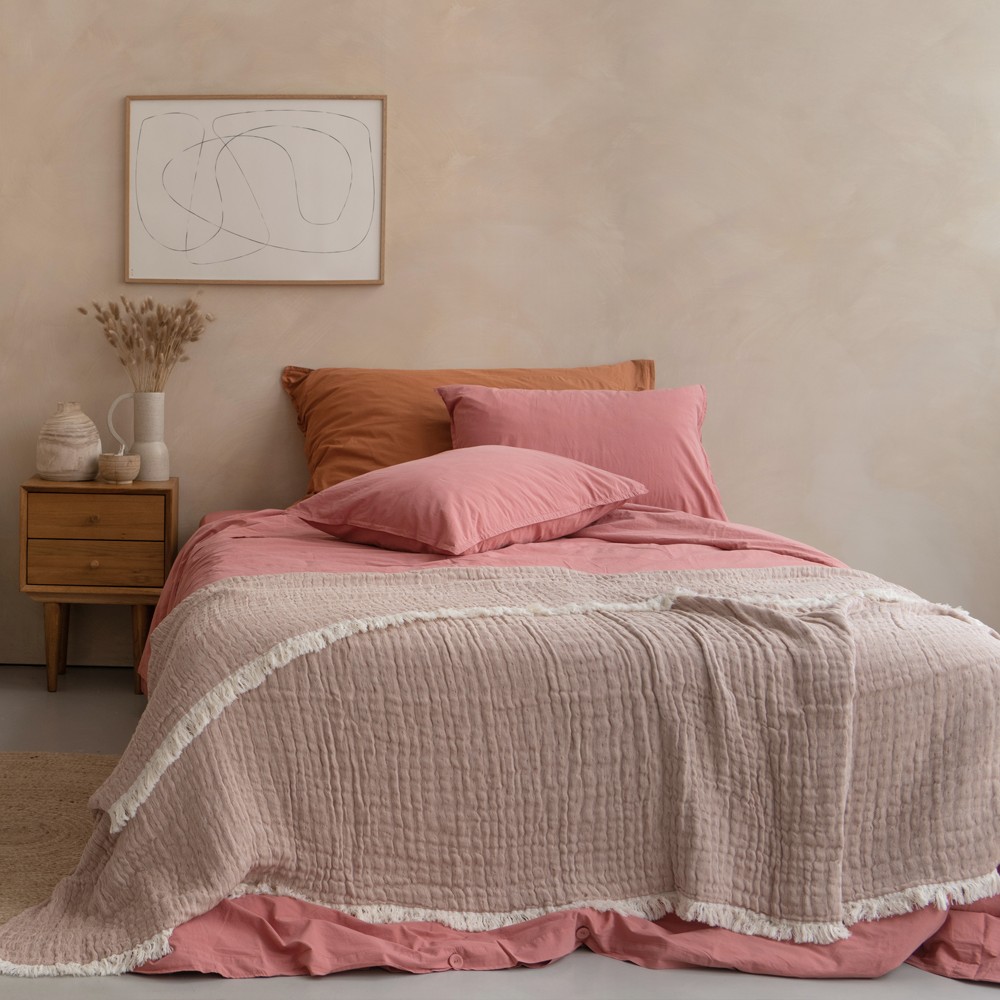 Chez OONA Home nous le voulons généreux, moelleux, accueillant, optimiste et gourmand. Comme une envie de s’élancer au cœur d’une foule d’oreillers, de s’enivrer de textures variées, de se pelotonner sous une couette et sur la taie laisser la tête s’abandonner. C’est une caresse de draps l’été, un doudou d’édredon l’hiver. La meilleure manière d’inviter le printemps à l’heure des feuilles jaunissantes, de s’évader vers d’improbables ailleurs dans un cocon rassurant.